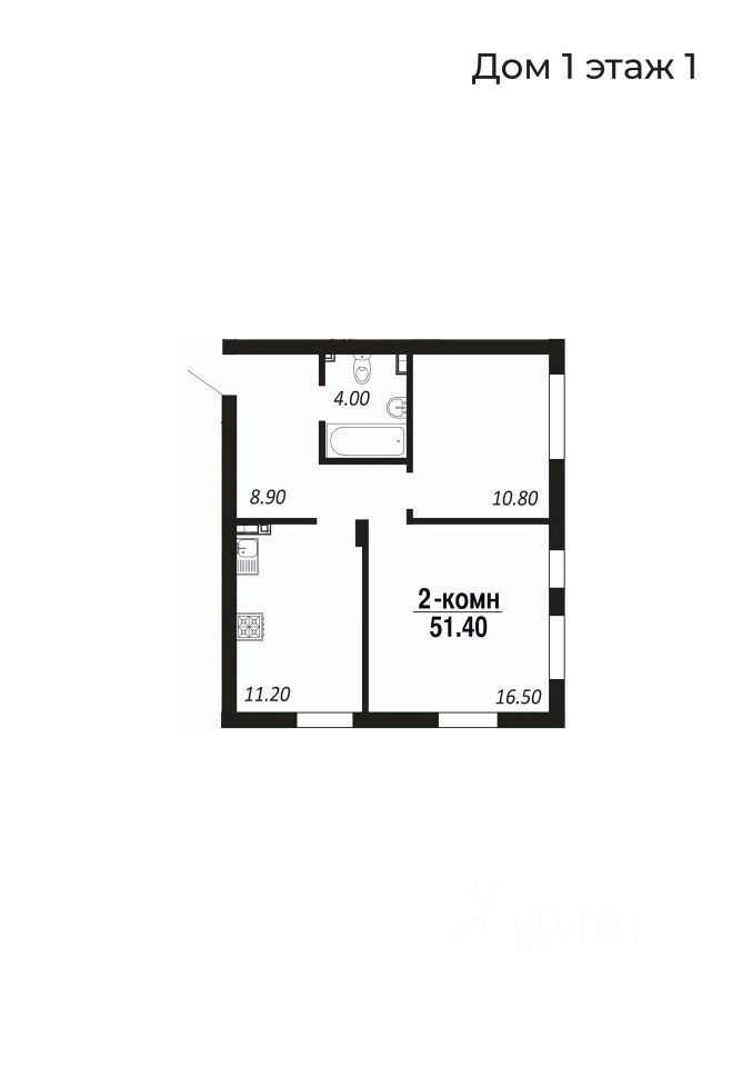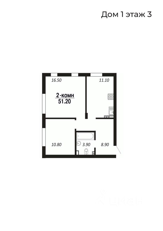2-комнатные 51,1–51,4 м²