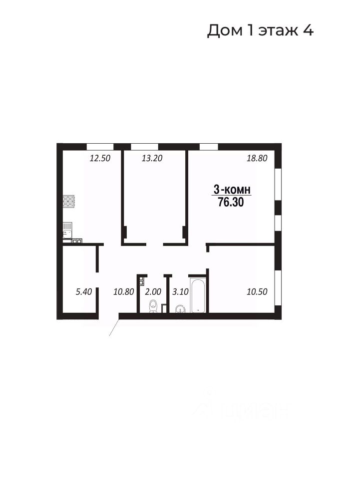 3-комнатные 76,1–76,6 м²